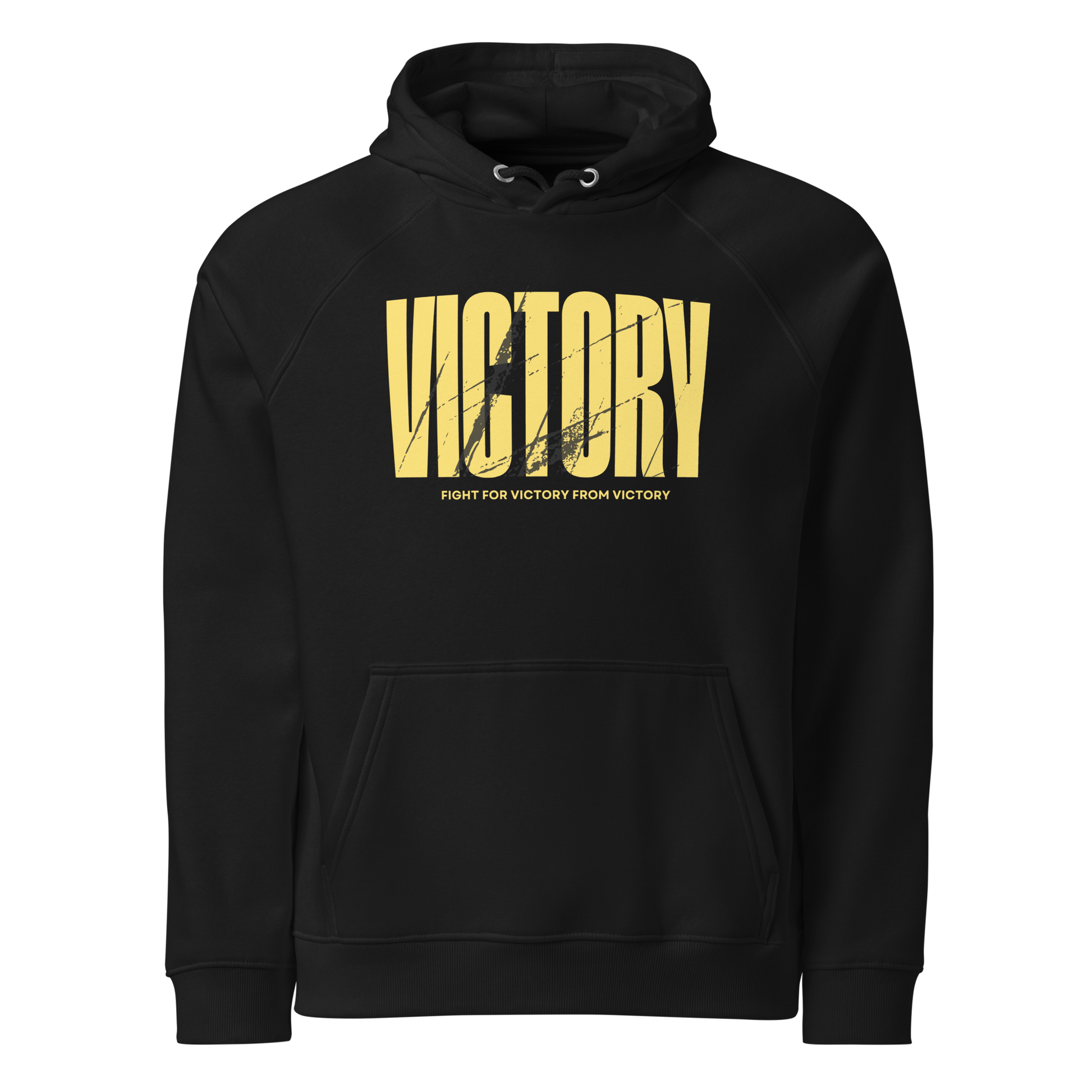 - Design Details: Bold VICTORY graphic in golden yellow across the chest with the statement “Fight for victory from victory” beneath.
